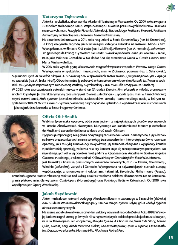 Koncert galowy XV Dni Pamięci, który odbył się na scenie Teatru im. Stefana Jaracza w Łodzi, był wyjątkowym, emocjonalnym wydarzeniem artystycznym. W roli głównej wystąpiła amerykańska aktorka i wokalistka żydowskiego pochodzenia Daniella Rabbani, która w towarzystwie pianisty Neala Brostoffa oraz Tria Sebastiana Wypycha, zaprezentowała głęboko poruszający program złożony z pieśni w języku jidysz. Jej występ, niosący uniwersalne przesłanie i autentyczne emocje, stał się muzycznym hołdem dla ofiar Holokaustu oraz wyrazem pamięci, która zakorzeniona w sztuce, potrafi przekraczać granice języków, kultur i pokoleń.