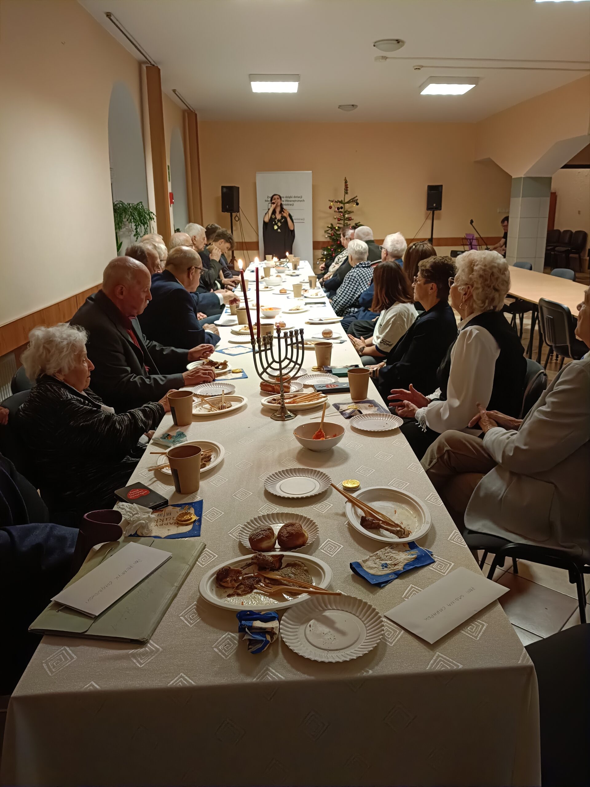 W sobotę 13 grudnia w siedzibie wrocławskiego oddziału TSKŻ odbyło się spotkanie chanukowe z udziałem członków społeczności żydowskiej, przyjaciół i miłośników tradycji. Program obejmował krótkie przedstawienie teatralne w wykonaniu Klubu Seniora oraz występ aktorki Teatru Żydowskiego Moniki Chrząstowskiej. W tak radosnym dniu nie zabrakło tradycyjnego poczęstunku i symboli chanukowych, takich jak drejdle, czy chanuke gelt.
